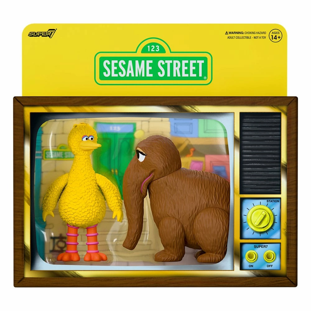 1, rue sésame pack 2 figurines reaction big bird and mr. snuffleupagus 10 cm