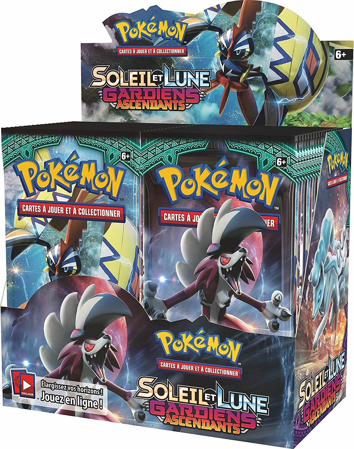 Découvrez 36 Boosters Pokémon Soleil et Lune Gardiens Ascendants (Version Française) sur Référence Gaming.