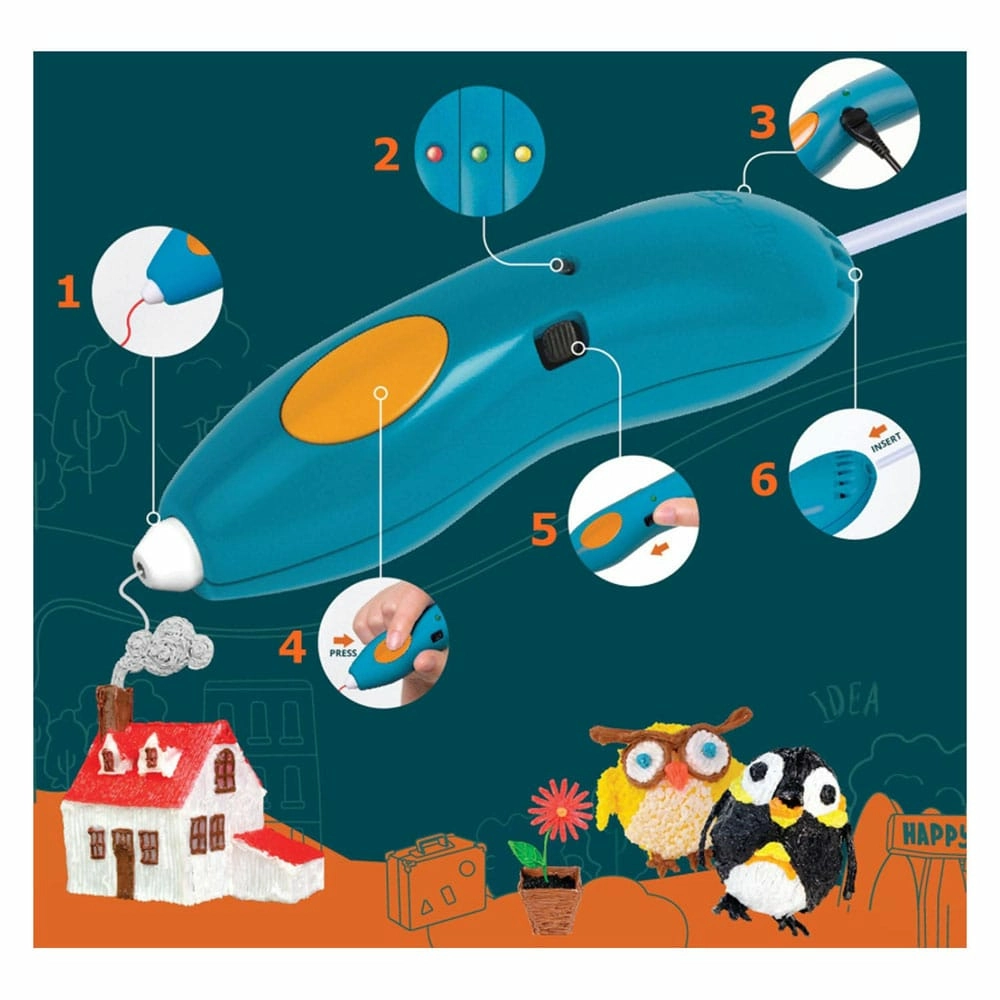Le stylo 3D utilise un plastique sans BPA qui est non seulement sûr, mais qui refroidit et durcit rapidement. Vous pouvez littéralement dessiner dans les airs sans vous soucier des pièces chaudes ou des résines désagréables.