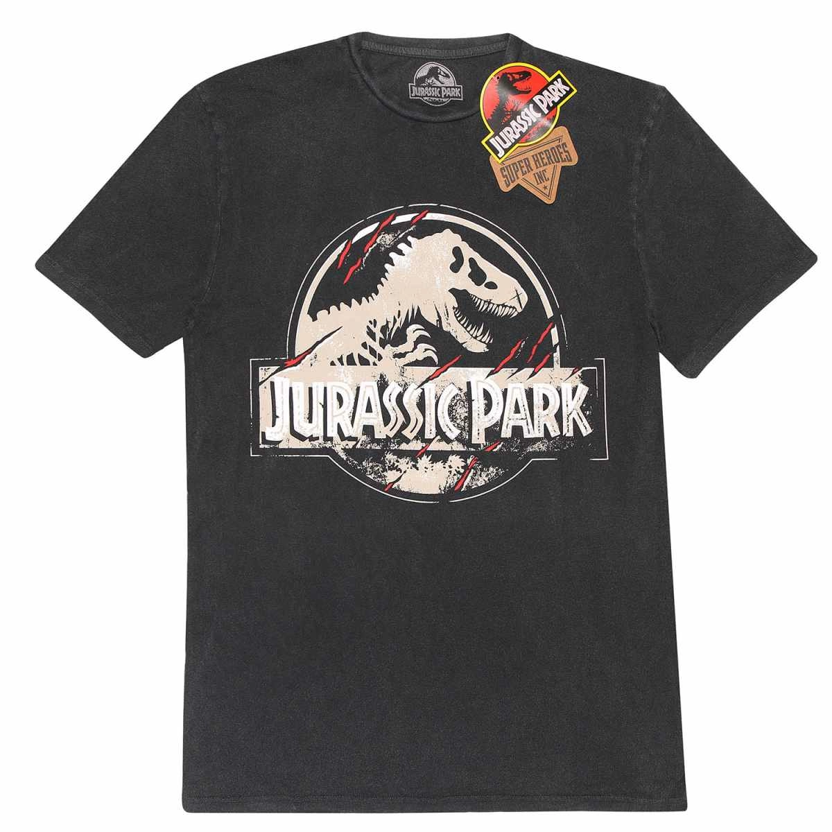 Jurassic park - scratched logo (superheroes inc. acid wash t-shirt)