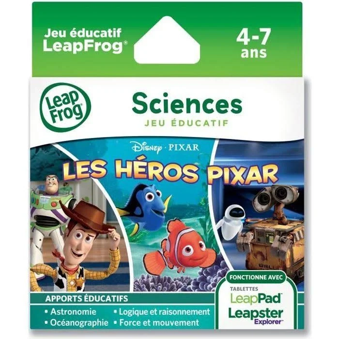 Le jeu Leapster/LeapPad - Les héros Pixar de LEAPFROG fonctionne sur la console Leapster Explorer et la tablette LeapPad Explorer. Ce jeu propose aux enfants de retrouver tous les héros Pixar comme WALL-E, Nemo ou Woody.