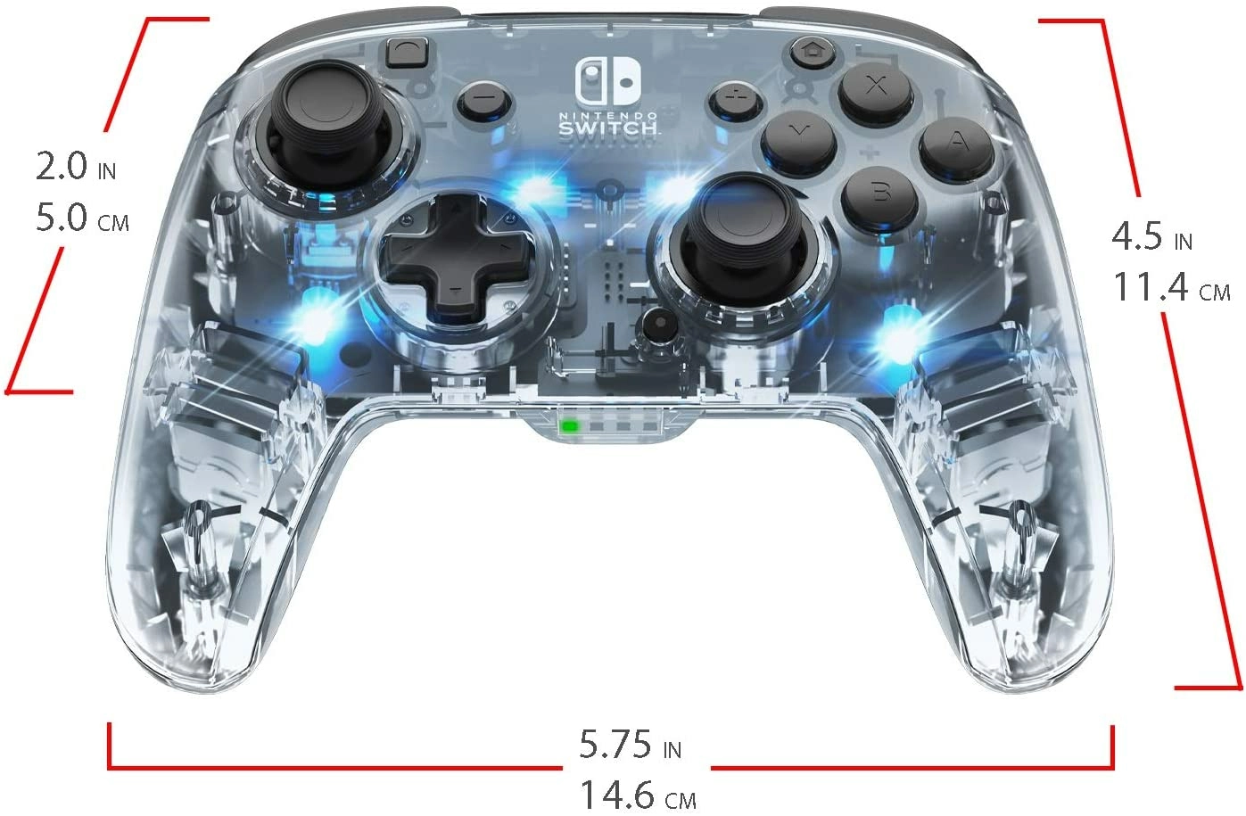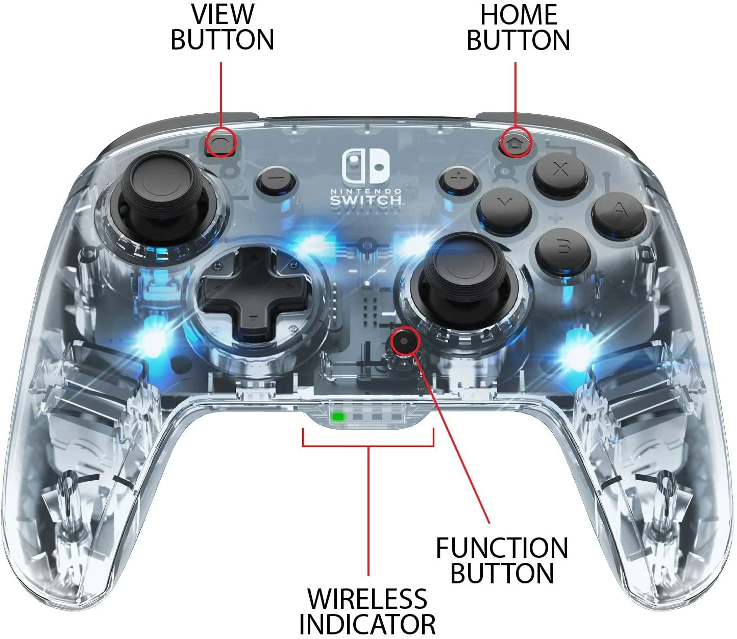 Coupez le cordon et passez au sans fil avec la manette Afterglow Wireless Deluxe pour Nintendo Switch ! Choisissez votre couleur préférée avec les options d'éclairage LED prismatique et illuminez votre expérience de jeu. Combinez la facilité d'une manette sans fil avec la gamme complète de couleurs de notre éclairage LED prismatique Afterglow pour obtenir la manette Switch Pro ultime ! Les joueurs peuvent parcourir l'arc-en-ciel, régler leur couleur préférée ou éteindre complètement les lumières. Jetez un coup d'œil dans le boîtier en polycarbonate transparent de la manette, pour découvrir son circuit interne. Comme il s'agit de la manette sans fil Afterglow Deluxe, elle est dotée de deux boutons programmables et de commandes de mouvement pour optimiser votre jeu. La batterie rechargeable intégrée permet une durée de jeu extra-longue (plus de 20 heures) et une portée sans fil allant jusqu'à 15m !