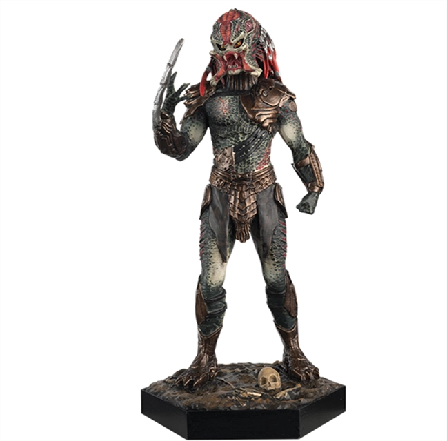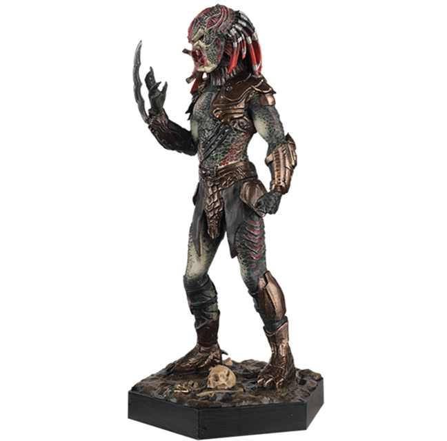 Le Predator Berserker est le terrifiant leader d’un clan de Super Predators qui lutte contre une tribu de Predators originaux pour le contrôle d’une réserve de gibier dans Predators de 2010. Outre sa taille et sa force, il a recours à une technologie de pointe, à des pièges mortels et à des chiens de chasse pour traquer une bande de guerriers humains dans l’inhospitalière jungle de la réserve.Votre figurine est présentée avec son masque relevé, révélant d’effrayants traits reptiliens et des marques rouges sur la peau qui le différencient du Predator original.Elle a été peinte à la main et minutieusement reproduite.Personnage : Predator BerserkerFilm : Predators 2010Franchise : 20th Century FoxEditeur : EaglemossMatériau : Résine métalliqueEchelle : 1/16Poids : 178 gHauteur : 16,7 cmEmballage : boîte en couleurLangue : anglais, français, allemand, espagnol