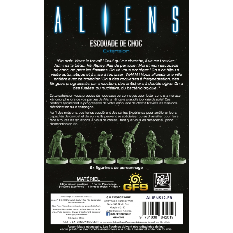 L'extension Aliens : Escouade de Choc vous propose de nouveaux personnages pour lutter contre la menace xénomorphe lors de vos parties de Aliens : Encore Une Jolie Journée De Soleil. Ces renforts faciliteront la progression de votre escouade de choc à travers les missions d'éradication ou la campagne.