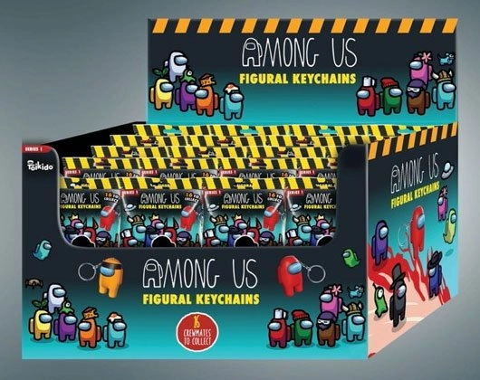 Assortiment de 24 porte-clés en emballage boîte-mystère. 16 modèles différents.