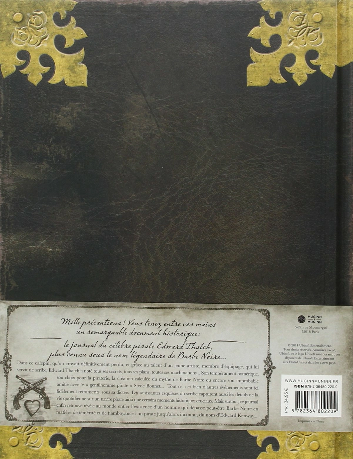 Mille précautions ! vous tenez entre vos mains un remarquable document historique : le journal du célèbre pirate Edward Thatch plus connu sous le nom légendaire de Barbe Noire... Dans ce calepin, qu'on croyait définitivement perdu, et grâce au talent d'un jeune artiste, membre d'équipage, qui lui servit de scribe, Edward Thatch a noté tous ses secrets, tous ses plans, toutes ses machinations... Son tempérament homérique, son choix pour la piraterie, la création calculée du mythe de Barbe Noire ou encore son improbable amitié avec le "gentilhomme pirate" Stede Bonnet... Tout cela et bien d'autres événements sont ici fidèlement retranscrits, sous sa dictée. Les saisissantes esquisses du scribe capturent aussi les détails de la vie quotidienne sur un navire pirate ainsi que certains moments historiques cruciaux. Mais surtout, ce journal, enfin retrouvé révèle au monde entier l'existence d'un homme qui dépasse peut-être Barbe Noire en matière de témérité et de flamboyance : un pirate jusqu'alors inconnu, du nom d'Edward Kenway..