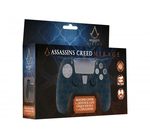 Assassin's creed mirage - coque silicone + grips pour manette ps5 - bleu logo