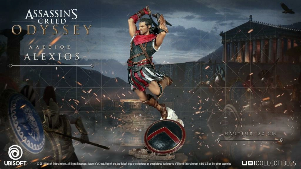 Ubisoft vient de dévoiler la nouvelle figurine inspirée par Alexios d'Assassin's Creed Odyssey. La figurine représente Alexios dans sa tenue complète comprenant un bouclier spartiate et l'emblématique Broken Spear of Leonidas. Alexios se tient sur un socle représentant une tête de Méduse. Hauteur : 32cm.