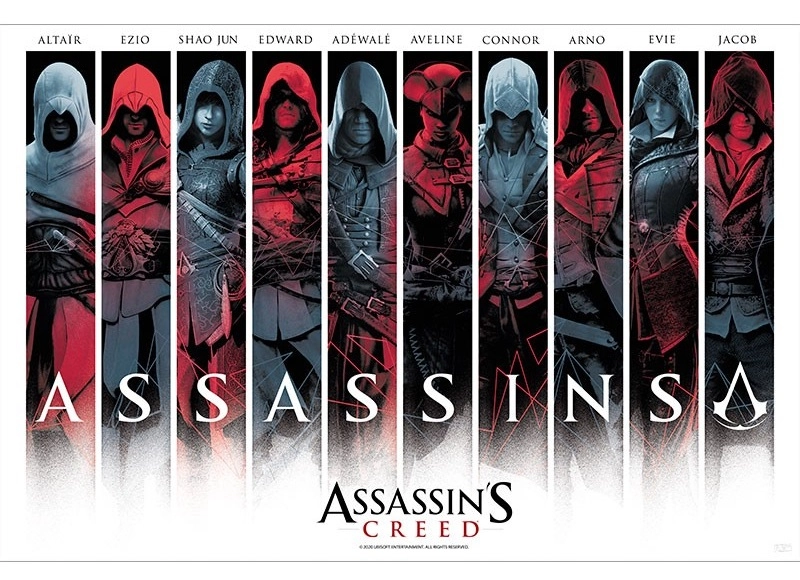 À travers les âges et le temps, la Confrérie des Assassins a toujours protégé la lumière, travaillant dans l'ombre. Retrouvez tous les personnages qui ont marqué vos partis d'Assassin's Creed sur ce poster.