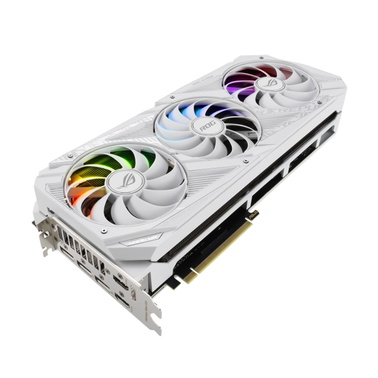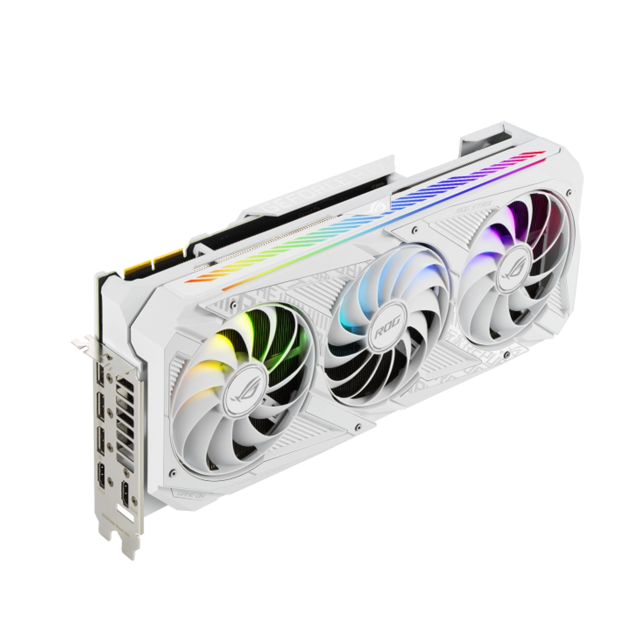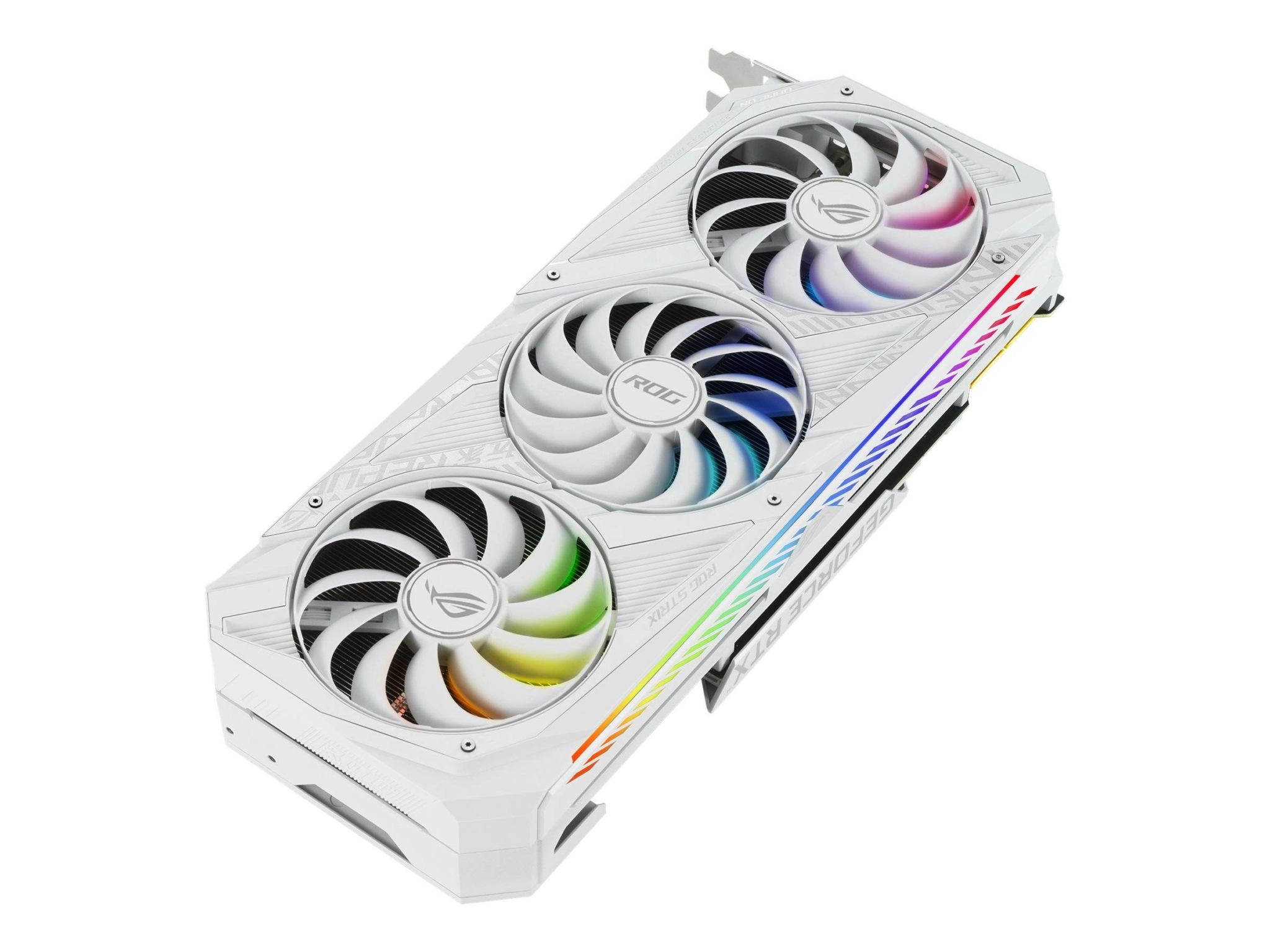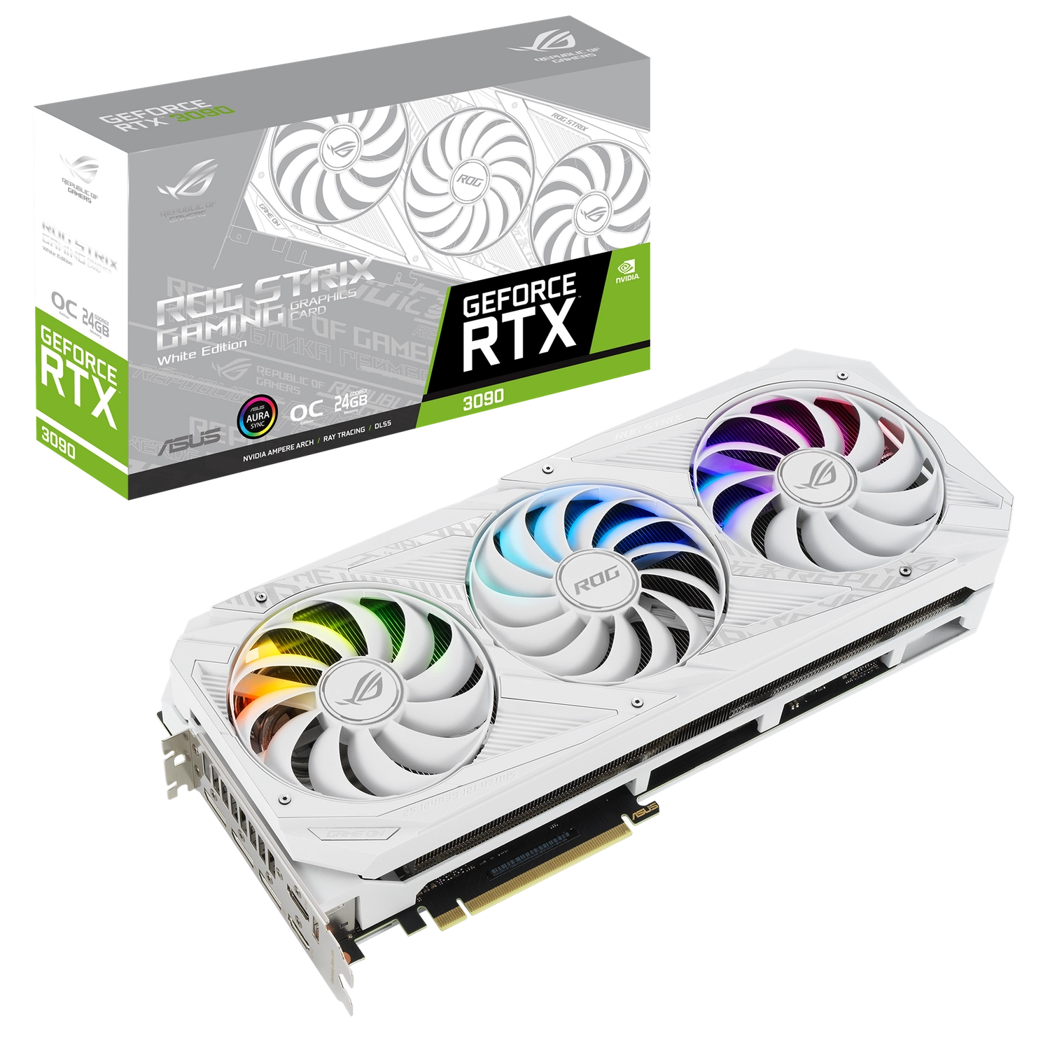 ASUS ROG -STRIX-RTX3090-O24G-WHITE. Processeur graphique famille: NVIDIA, Processeur graphique: GeForce RTX 3090. Mémoire carte graphique distincte: 24 Go, Type de mémoire de l'adaptateur graphique: GDDR6X, Mémoire Bus: 384 bit. Résolution maximale: 7680 x 4320 pixels. Version DirectX: 12.0, Version OpenGL: 4.6. Type d'interface: PCI Express 4.0. Type de refroidissement: Actif, Nombre de ventilateurs: 3 ventilateur(s), Couleur de l'éclairage: Multicolore