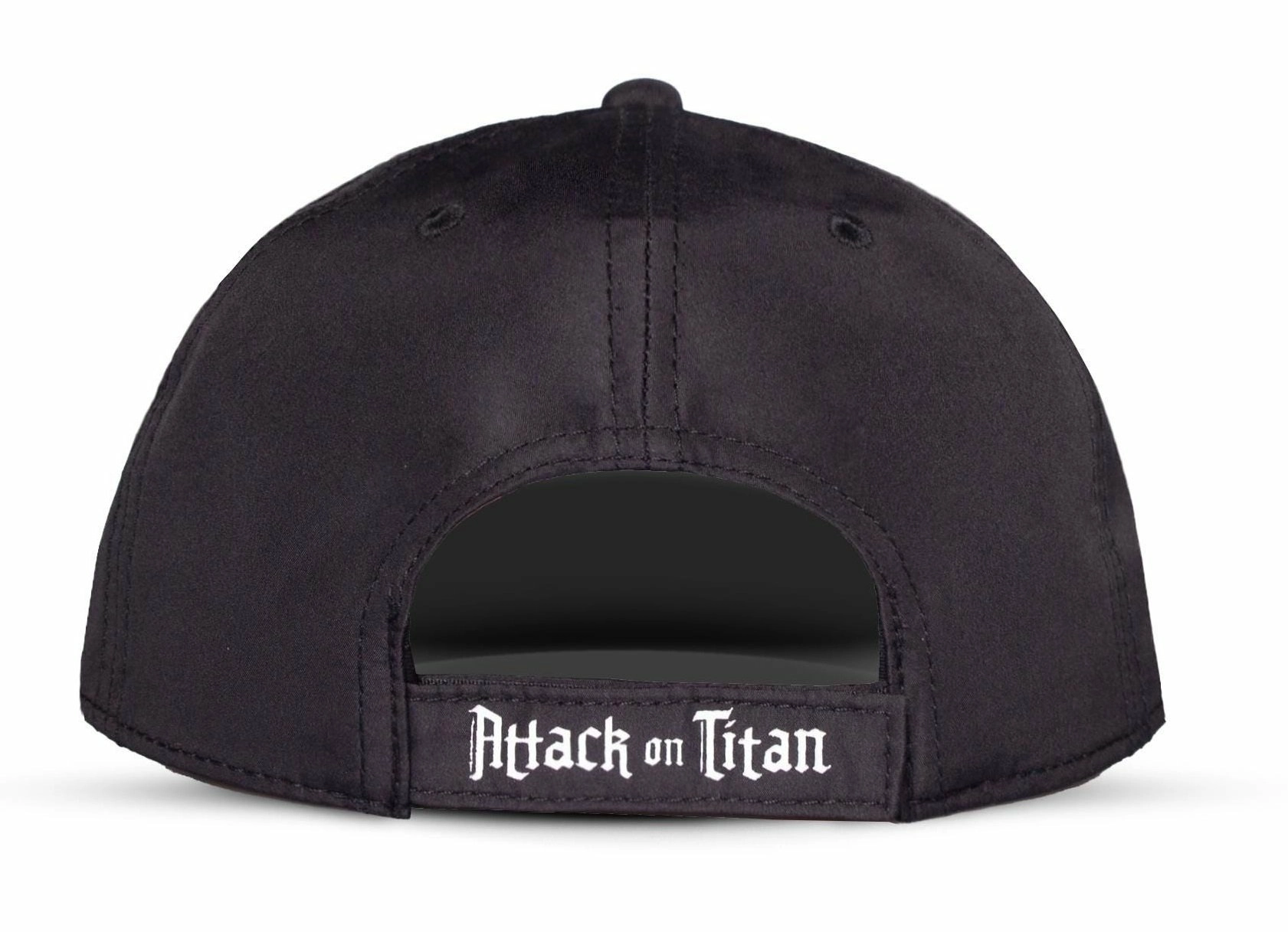 Cette casquette Attack on Titan est la pièce ultime à ajouter à votre collection d'anime. L'impression graphique unique et frappante de l'intimidant Titan Colossus s'étend sur le panneau avant et se présente sous la forme d'une impression par sublimation de qualité supérieure. Ouverte à l'arrière et réglable pour un ajustement confortable et optimal.