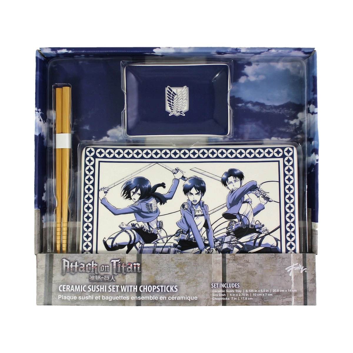 Ce magnifique set de sushis Attack on Titan est le cadeau parfait pour les fans de l'univers de Hajime Isayama. Ce set de sushis comprend 3 personnages différents : Eren, Levi et Mikasa. Chaque personnage est représenté dans des couleurs vives et avec des détails très réalistes. Ce set de sushis est très durable et parfait pour une utilisation quotidienne. Ce set de sushis Attack on Titan est un excellent moyen de rendre votre petit déjeuner ou votre goûter plus amusant et plus coloré !