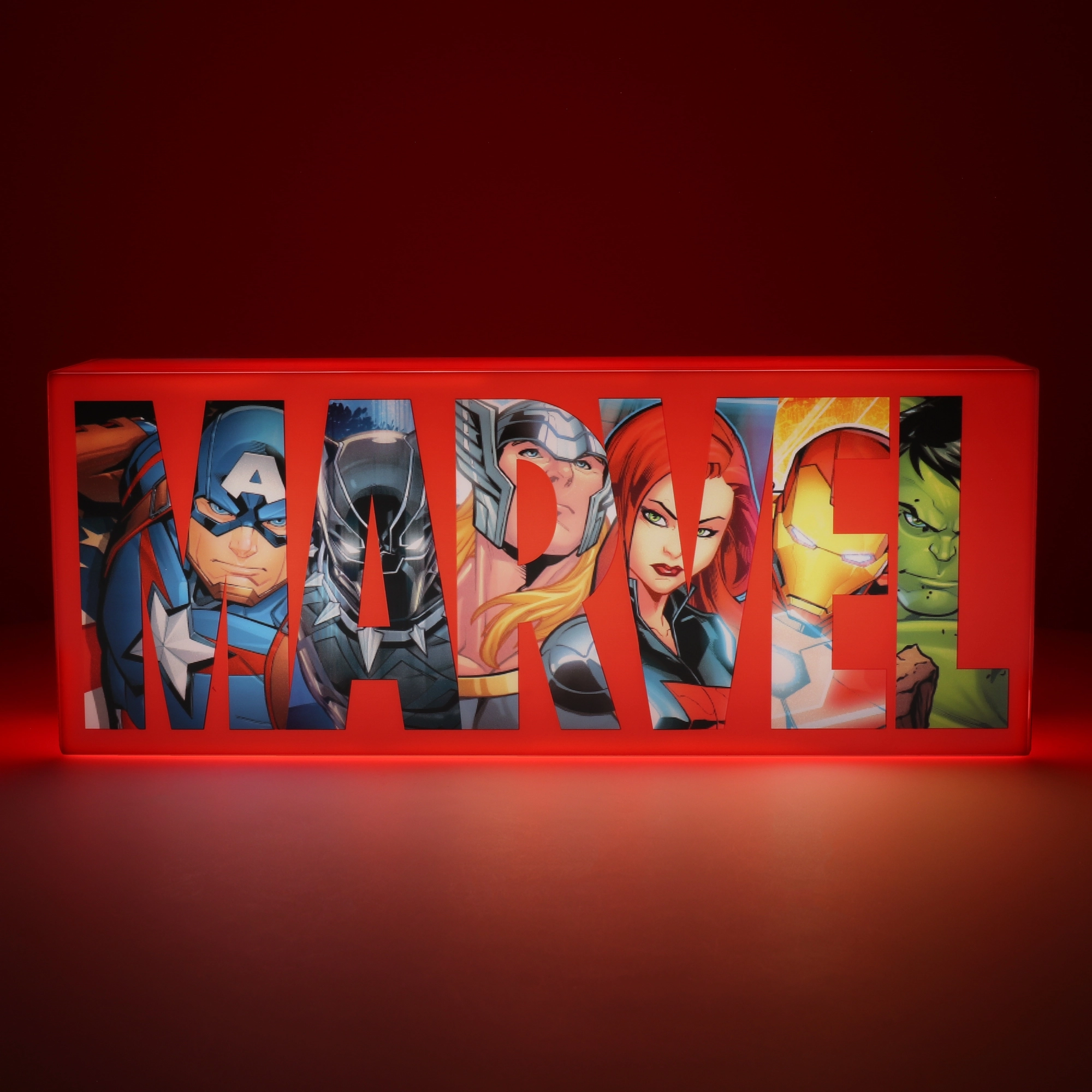 Rassemblez les Avengers dans n'importe quelle pièce avec cette lampe Paladone Marvel Avengers Logo Light !Cette lampe rouge frappante affiche fièrement le logo Marvel emblématique associé à ces bandes dessinées classiques. Le lettrage représente les Avengers les plus connus, une équipe de super-héros et de protagonistes de l'univers Marvel, recrutés par Nick Fury pour protéger la Terre d'un danger imminent. Appréciez la présence de Captain America, Black Panther, Thor, Black Widow, Iron Man et Hulk et embrassez l'Avenger qui sommeille en vous !Livrée dans une boîte cadeau fermée et marquée, elle peut ajouter l'ambiance parfaite et illuminer une grotte d'homme, une chambre à coucher, une salle de jeux ou éclairer un espace de travail. De plus, tout collectionneur de souvenirs officiels de Marvel l'appréciera comme pièce maîtresse de sa collection.Cette lampe géniale peut être alimentée par le câble USB fourni ou, pour une portabilité totale, par 3 piles AA (non fournies). La lampe dispose de deux modes d'éclairage, avec des effets de phase ou de pulsation, et peut être fixée au mur ou posée sur un support.Il s'agit d'un produit sous licence officielle !