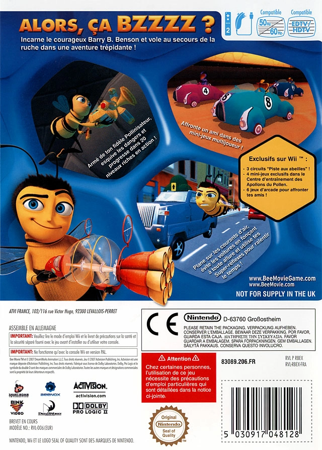 Bee Movie sur Wii est un jeu d'action tiré du long métrage du même nom. Vous incarnez une abeille qui ne veut pas finir sa vie à travailler dans la même entreprise et qui va essayer différents jobs pour trouver ce qui lui va le mieux.