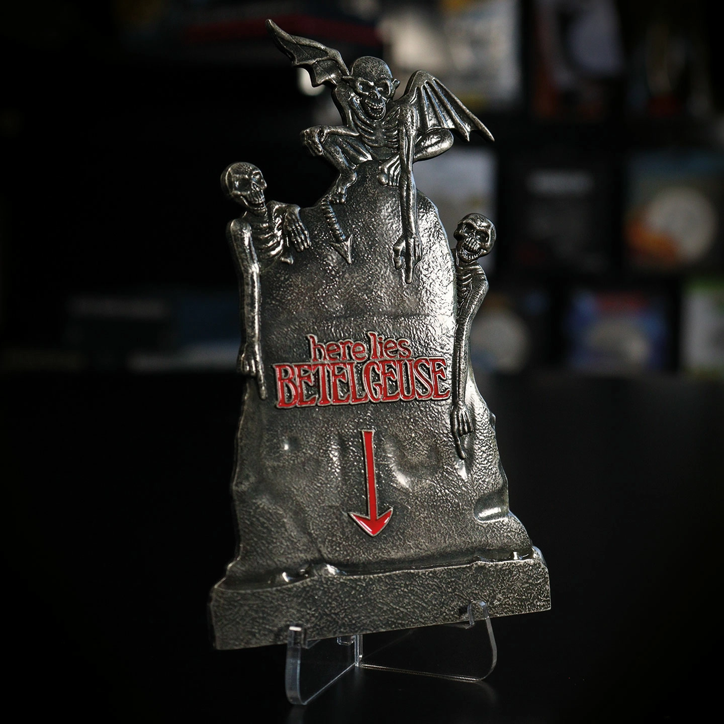 La tombe de Bételgeuse (ou de Beetlejuice), l'endroit où réside le fantôme avec le plus, apparaît dans la maquette de Winter River construite par Adam Maitland dans son grenier. Cette mini réplique en édition limitée est fabriquée en métal vieilli, est numérotée individuellement parmi 1 988 (clin d'œil à l'année de sortie du film) et est livrée avec un présentoir.- Licence officielle- Limitée à 1988 dans le monde entier- Numéroté individuellement - Lingot 118x70mm