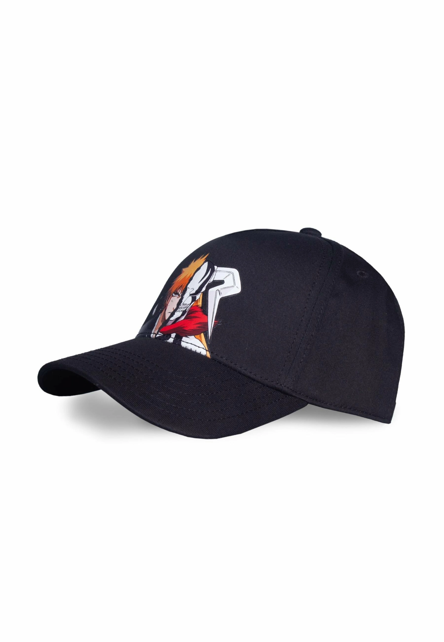 Améliorez votre style avec notre casquette Bleach noire, ornée d'une image divisée d'Ichigo Vasto Lorde. Fabriquée pour le confort et la durabilité, elle est rehaussée d'une étiquette tissée orange portant le logo Bleach. Elle est complétée par des clips métalliques orange pour un ajustement parfait. Adoptez le fandom Bleach avec style !