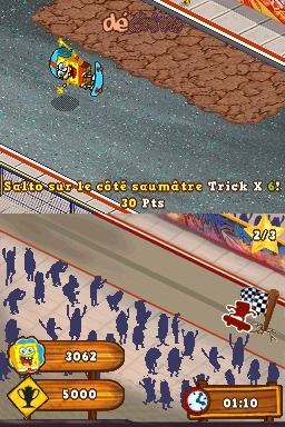 Bob L'Eponge : Surf & Skate Roadtrip sur DS est un jeu de sport. Celui-ci permet au joueur d'incarner tous les héros du dessin animé dans des épreuves de surf, de skate et de snowboard.