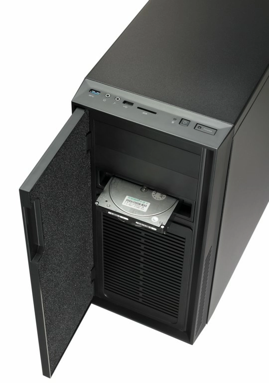 Look sobre mais efficace, tout de noir vêtu le boitier PC Silencio abrite une véritable porte en façade qui se chargera de cacher efficacement vos périphériques disgracieux ! Sa structure en acier affiche des dimensions harmonieuses avec 41 cm de haut pour 9,2 Kg sur la balance. Il enfermera dans son "monde du silence" les cartes mères au format ATX ainsi que Micro-ATX. D'une finition exemplaire, le Silencio arbore un intérieur et un extérieur noir du plus bel effet.