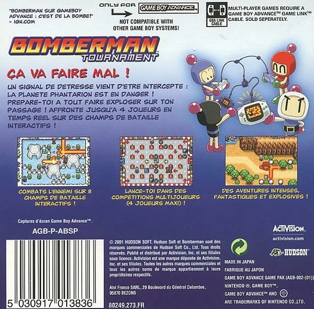 Dans le jeu d'action Bomberman Tournament sur Game boy Advance, Bomberman part à la recherche de son ami disparu, Max, à cause d'une ch... Lire plus