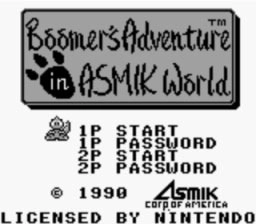 Dans le jeu d'action Boomer's Adventure In Asmik World sur Game Boy vous incarnez Boomer un petit dragon qui doit gravir la Tour de Zoozoon pour combattre le Seigneur des Ténébres : Zoozoon.