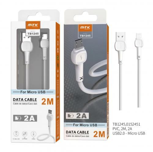Câble de charge micro usb universel 2m-2a-tb1245-blanc