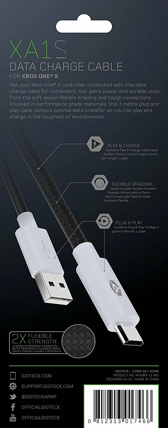 Câble de charge pour manettes Xbox One x 2 - Gioteck XA1S
