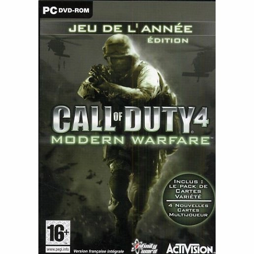 Call of Duty 4 Modern Warfare édition Jeu De L'année est un jeu de tir en vue subjective sur PC qui se déroule dans un contexte contemporain et qui permet de suivre deux conflits fictifs en parallèle. Le premier place le joueur dans la peau d'un marine américain coincé dans une guérilla urbaine au Moyen-Orient, tandis que dans l'autre lui fait incarner un agent d'élite britannique embarqué dans des missions discrètes en Russie et Europe de l'Est. Plusieurs modes multijoueurs sont aussi de la partie.