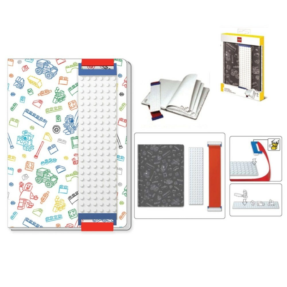 Carnet à bande blanche avec support LEGO de 6 x 24 cm. Des pièces de LEGO peuvent être clippées dessus. Un cadeau idéal pour tous les passionnés de LEGO. Un excellent atout pour votre trousse ou votre bureau !