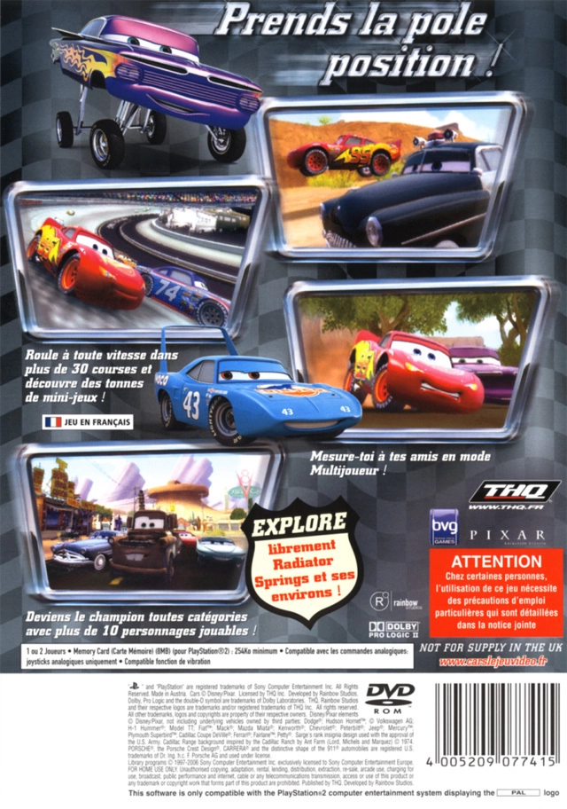 Cars sur Playstation 2 est l'adaptation du film éponyme de Pixar. Dans ce jeu de courses vous n'aurez qu'un but : prouvez que le héros, Flash McQueen, est la voiture la plus rapide au monde.