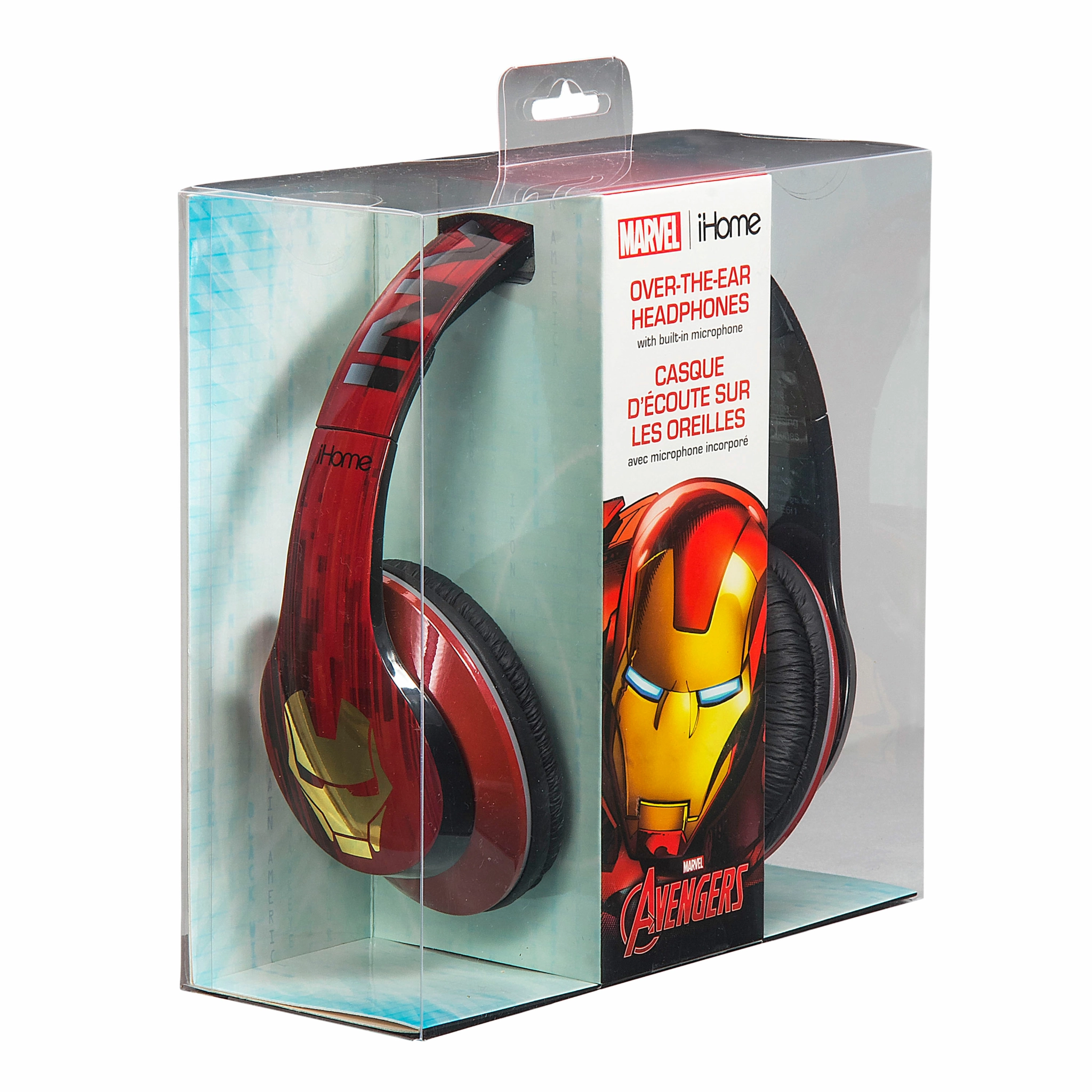 Casque Marvel Filaire avec Arceau Réglable Stéréo haute définition, compatible smartphone, tablette, lecteur MP3/MP4 à l’effigie de Iron Man.