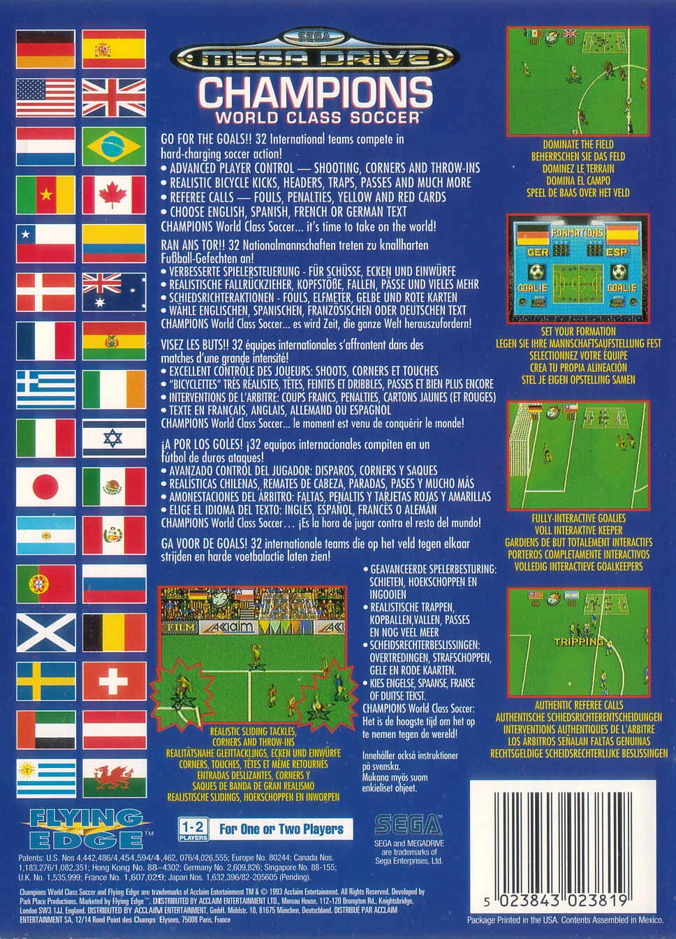 Le jeu de football Champions World Class Soccer sur Megadrive offre 32 équipes non officielles qui se différencient par des caractéristiques différentes.
