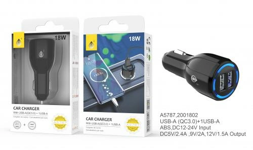 Chargeur allume cigare altran-2usb, 2.4a - a5787- noir