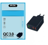 Chargeur secteur 2 port ubs et 1 quick charge 3.0- at891- noir