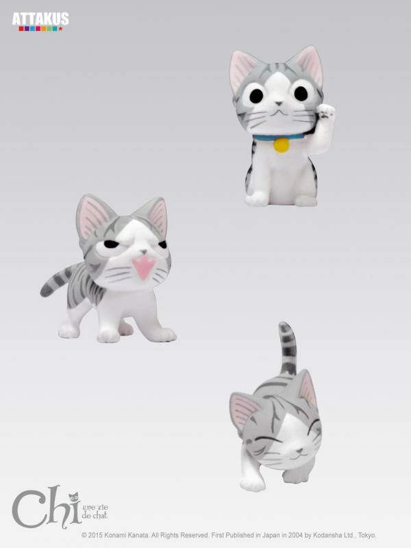 Taille de la boîte : 15 x 7 x 7cm.Taille des figurines (en moyenne) : 25 x 40 x 5 mm.Contient Chi : Calin, Porte-Bonheur et Colère.Quoi ?! Vous ne connaissez pas encore Chi ?!!! Ce manga raconte l'histoire d'un petit chat recueilli par une famille et son évolution au sein de cette famille.Très populaire et connu des fans de manga, y compris en France, Chi – Une vie de chat s'adresse à un très large public. Le propos est universel, la réalisation adorable et le ton à même de plaire aux parents prescripteurs et à leurs enfants lecteurs. Hommes, femmes, enfants, ados, adultes, amateurs de manga ou néophytes complets, ce manga convient à tous.À moins d'être affublé d'un cœur en acier trempé, nul être un tant soit peu humain ne saurait résister aux attitudes craquantes de Chi...
