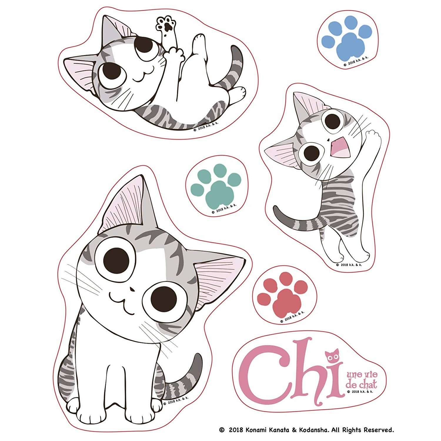 Retrouvez Chi dans des poses plus mignonnes les unes que les autres avec ces mini-stickers ABYstyle. - Chaque pack est composé de 2 planches d'éléments prédécoupés qui trouveront leur place sur les murs, cahiers, PC portables, frigos... - Dimensions totales d’une planche : 16 cm x 11 cm. - Planche adhésive en vinyle transparent repositionnable 100µ.