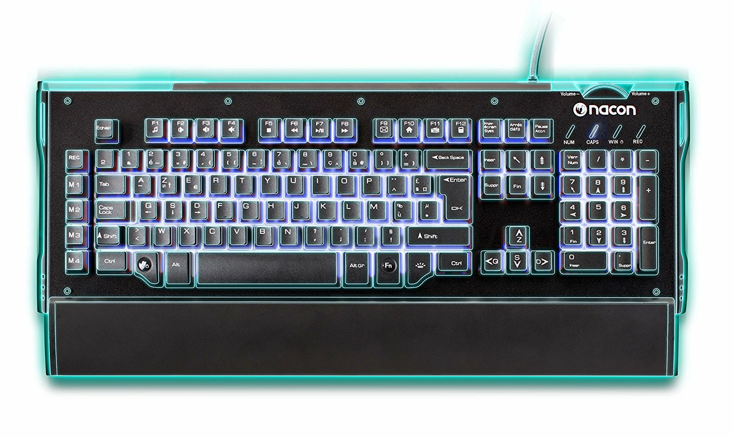 - Rétroéclairage des touches (Bleu, Vert, Cyan) avec effet pour un gameplay parfait dans l’obscurité.