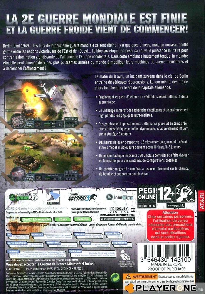 Codename : Panzers : Cold War est un jeu de stratégie en temps réel sur PC. Il vous plonge en pleine Guerre Froide, alors que le conflit armé reprend de plus belle entre Alliés et Soviétiques. Chaque mission vous place aux commandes d'un petit groupe d'hommes et de véhicules, qui doit accomplir une grande variété d'objectifs principaux et secondaires. Le jeu inclut également des modes multi accueillant jusqu'à 8 joueurs.