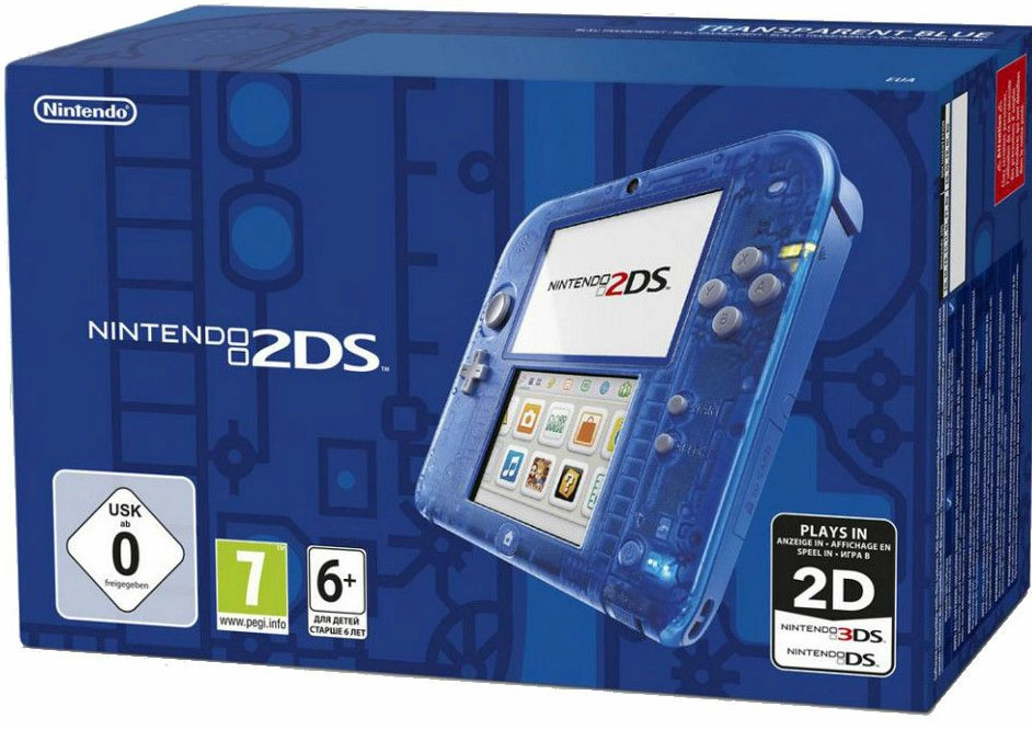 La Nintendo 2DS est disponible en deux combinaisons de coloris, Transparente rouge ou Transparente bleu – choisissez celle qui vous correspond le mieux ! Tout ce dont vous avez besoin est inclus dans la boîte, y compris une carte mémoire SDHC de 4 Go et un bloc secteur Nintendo 3DS compatible avec la Nintendo 2DS, la Nintendo 3DS et la Nintendo 3DS XL.