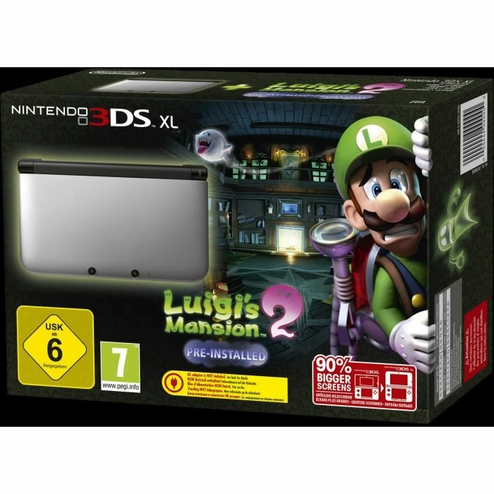 Console 3ds XL Argent et Noire + Luigi's Mansion 2 (jeu en version dématérialisée inclus)