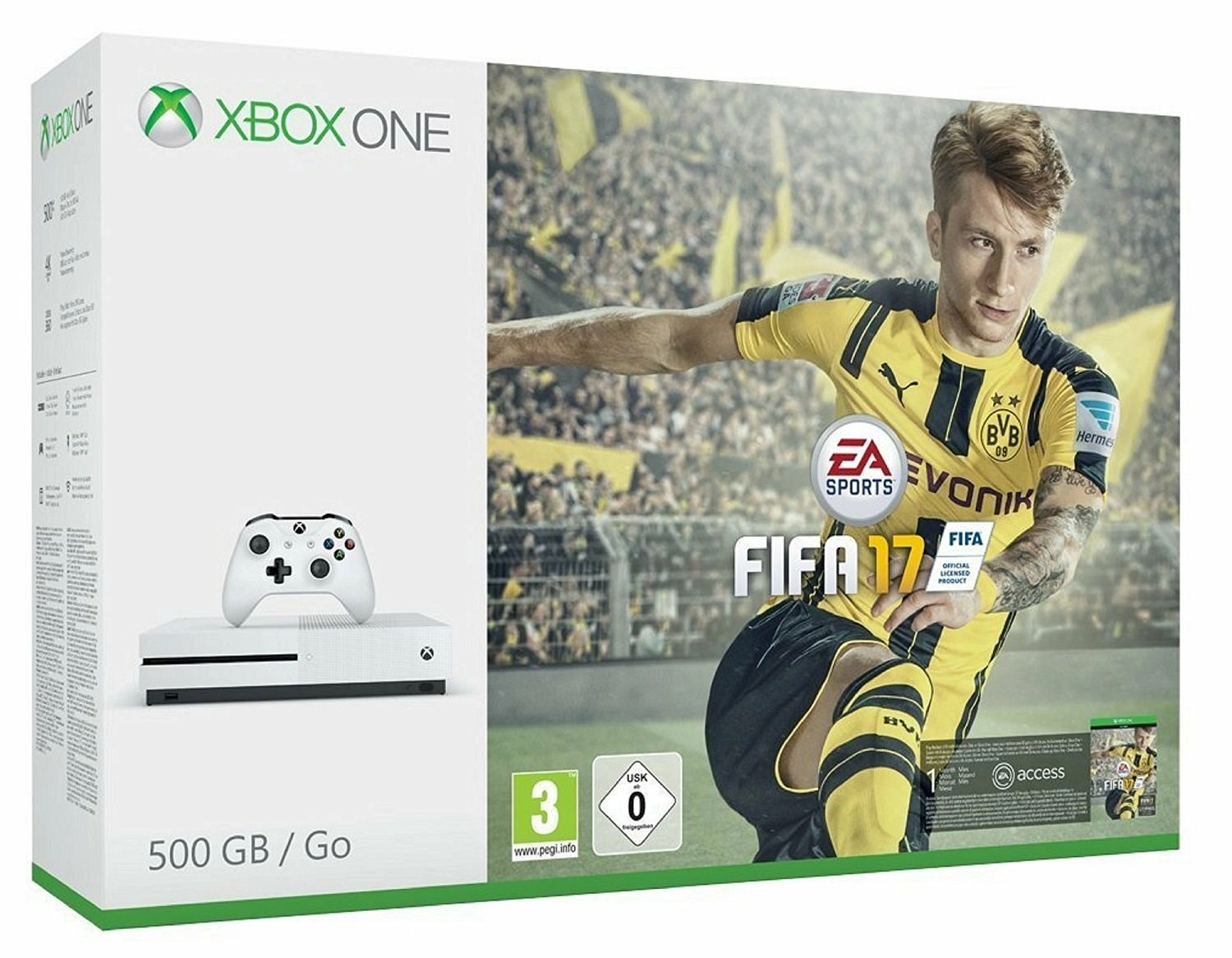 Contenu de la Console Xbox One S - 500 Go + Fifa 17 :