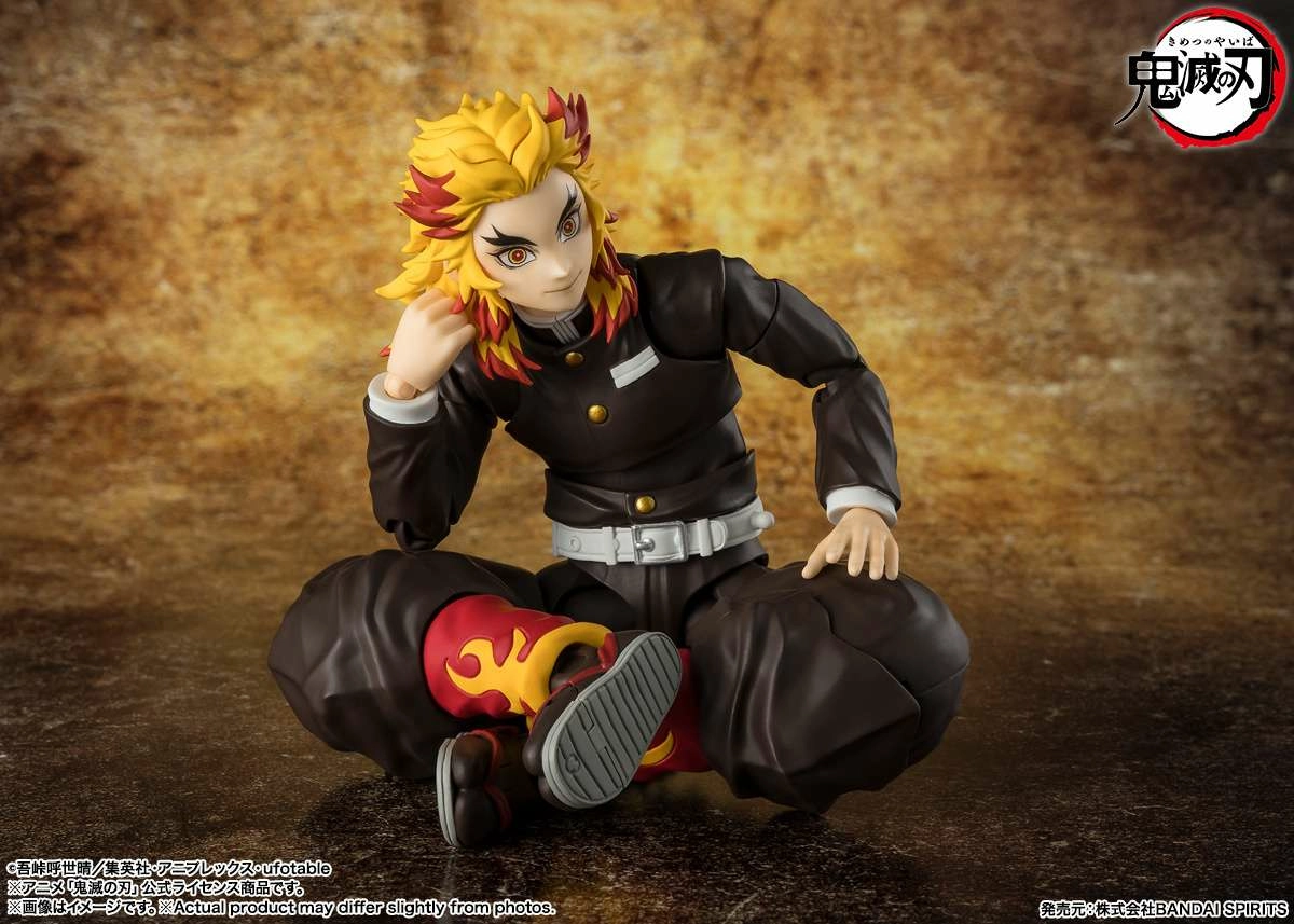 Kyojuro Rengoku de « Demon Slayer : Kimetsu no Yaiba » rejoint S.H.Figuarts. La figurine comprend des accessoires, des armes et des pièces supplémentaires. Diverses pièces interchangeables et une grande liberté de mouvement permettent de reproduire les impressionnantes scènes de combat de l'anime. Son haori est amovible, ce qui permet de le faire poser avec son uniforme.