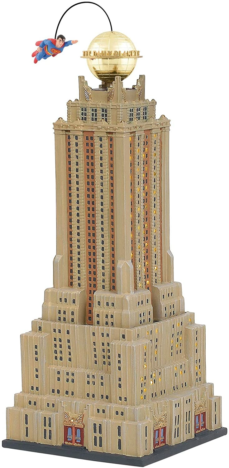Tourner au-dessus de la tête, plus vite qu’une balle qui accélère n’est ni un oiseau ni un avion, mais SUPERMAN ! Le puissant MAN OF STEEL, qui travaille dans ce même bâtiment en tant qu’alter ego du journaliste CLARK KENT. Comprend Superman animé volant autour du sommet du bâtiment.