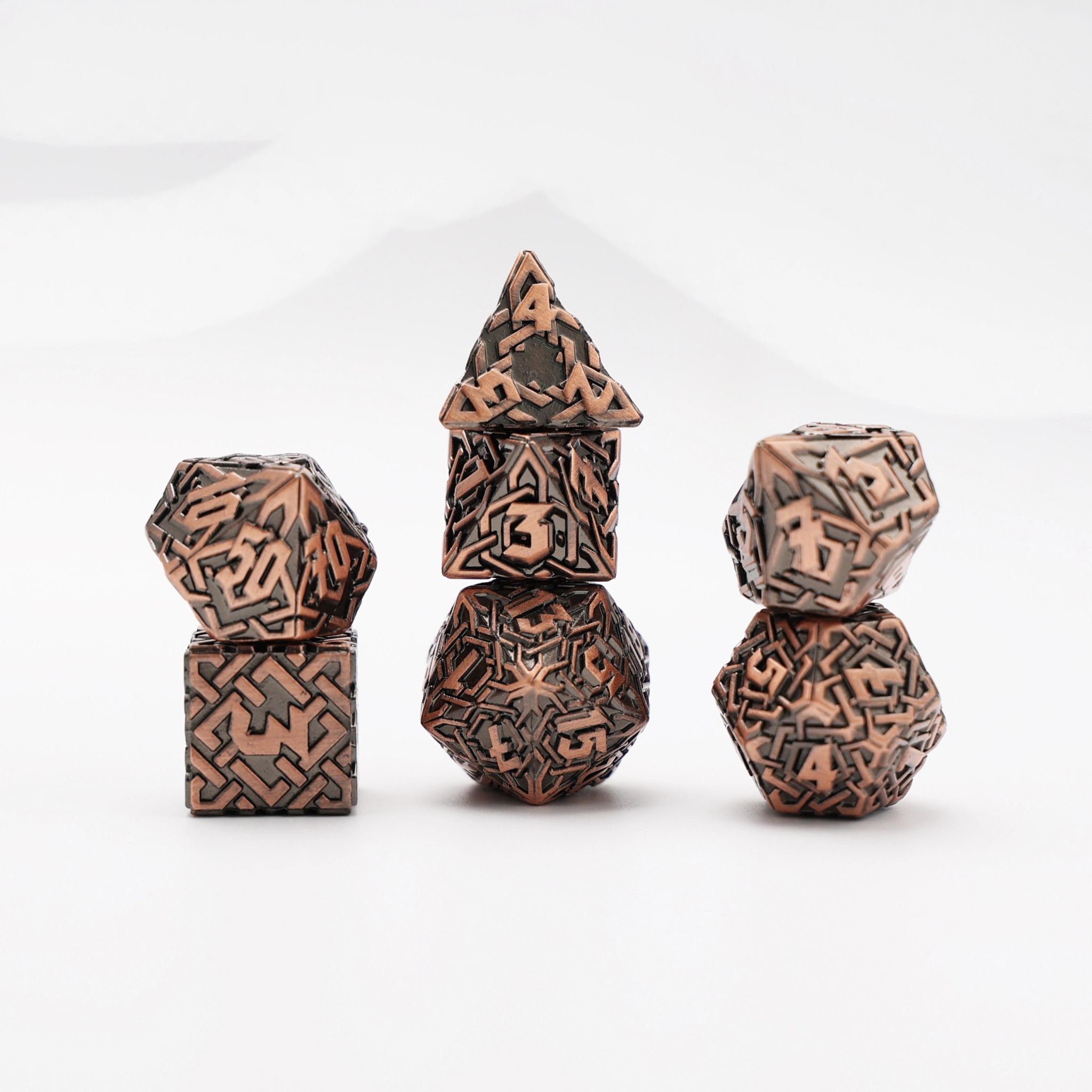 Dés métal - lot de 7 dés (16mm) - interlace bronze (+ boîte de rangement acrylique fourni - ref.610300)