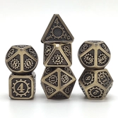 Set de 7 dés métal1 x D41 x D61 x D81 x D10 (unité)1 x D10 (dizaine)1 x D121 x D20Taille D6 pour référence : 14mmBoîte de rangement acrylique fourni (ref. 610300)
