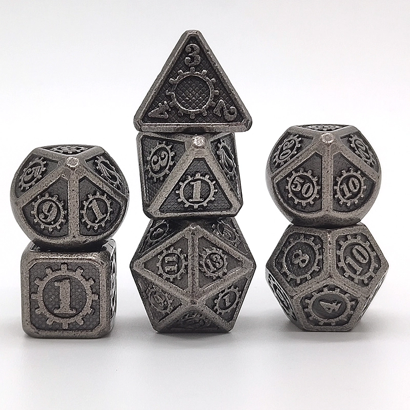 Dés métal - mini lot de 7 dés (14mm) - gear silver (+ boîte de rangement acrylique fourni - ref.610300)