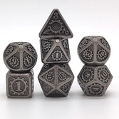 Set de 7 dés métal 1 x D4 1 x D6 1 x D8 1 x D10 (unité) 1 x D10 (dizaine) 1 x D12 1 x D20 Taille D6 pour référence : 14mmBoîte de range... Lire plus