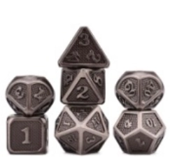 Set de 7 dés métal1 x D41 x D61 x D81 x D10 (unité)1 x D10 (dizaine)1 x D121 x D20Taille D6 pour référence : 14mmBoîte de rangement acrylique fourni (ref. 610300)