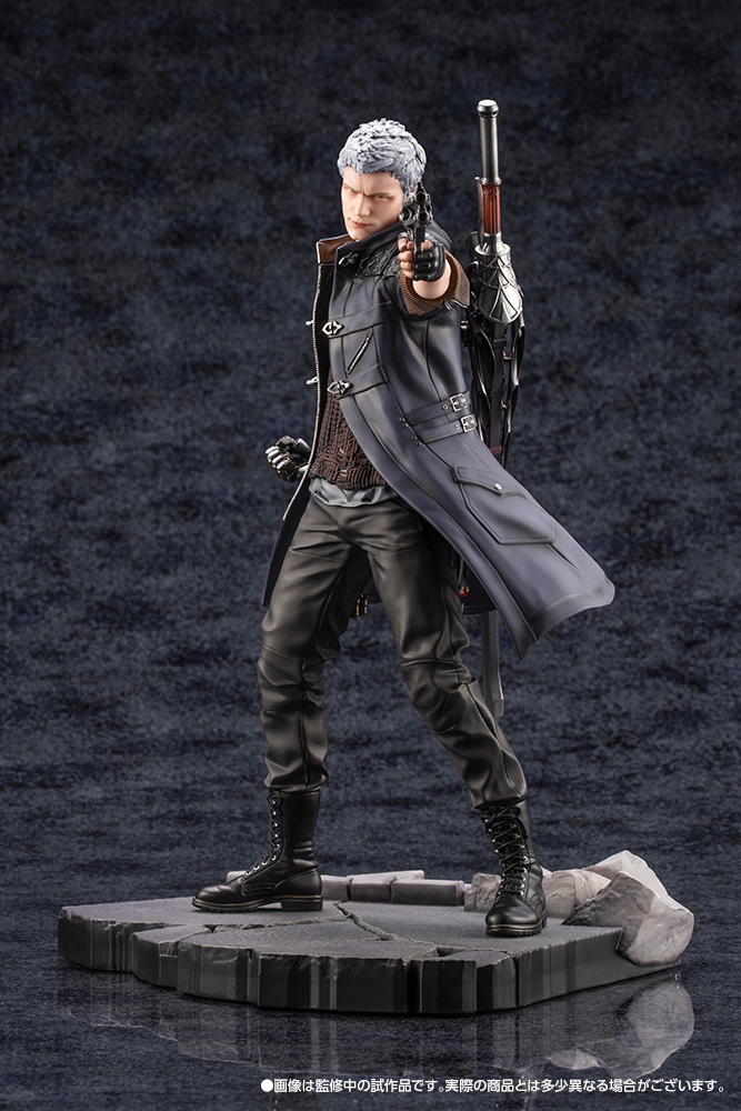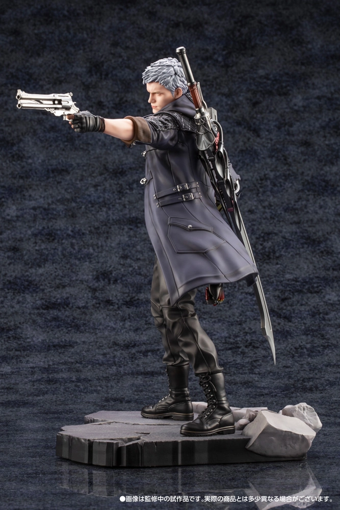Nero tiré du jeu vidéo Devil May Cry 5 sorti dernièrement sur PS4 arrive dans la gamme ARTFX. Echelle 1/8. Il est représenté avec son pistolet légendaire “Blue Rose”. Il est à la même échelle que Dante aussi disponible dans la même gamme et peut être positionné à ses côté pour former le duo d'enfer comme dans le jeu.