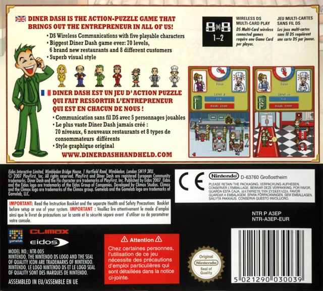 Sur plus de cinquante niveaux, Diner Dash sur DS se partage entre la frénésie de devoir servir des plats à des clients et la gestion de son propre restaurant.