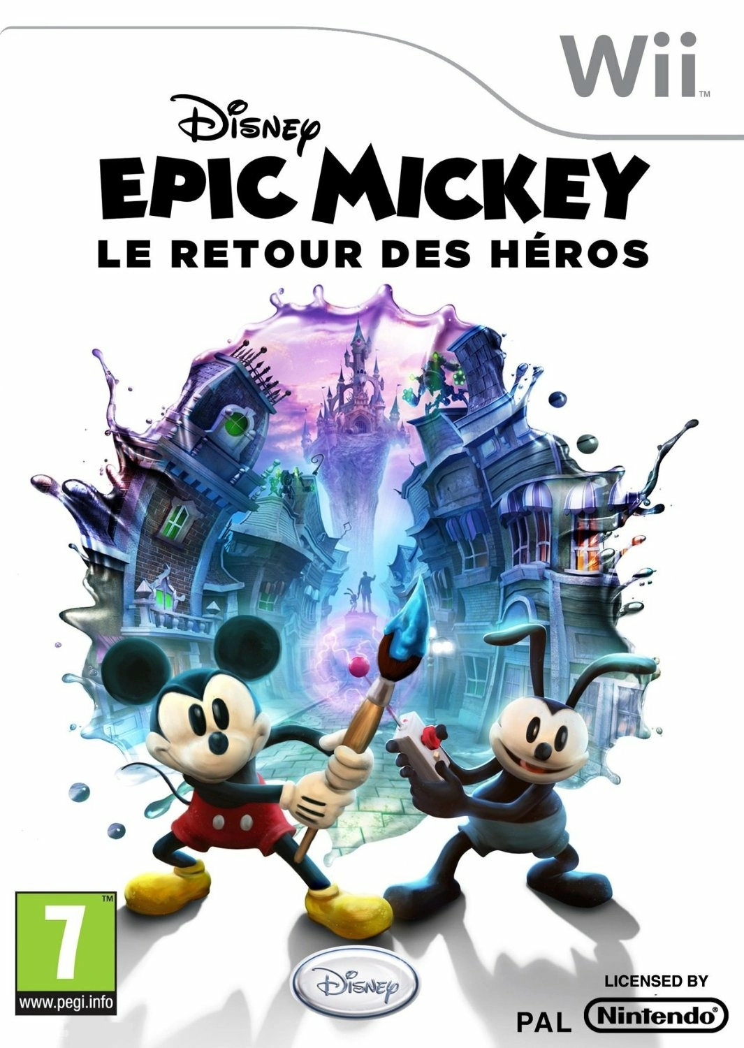Disney Epic Mickey le retour des Héros est un jeu de plates-formes et d'aventure sur consoles. Il vous propulse dans le monde de la désolation où les toons vont encore une fois requérir l'aide de Mickey pour sauver leur univers en péril. Mais Mickey n'est pas seul puisqu'il peut compter sur le soutien d'Oswald, le lapin chanceux, dont la présence permettra de joueur en coopération.